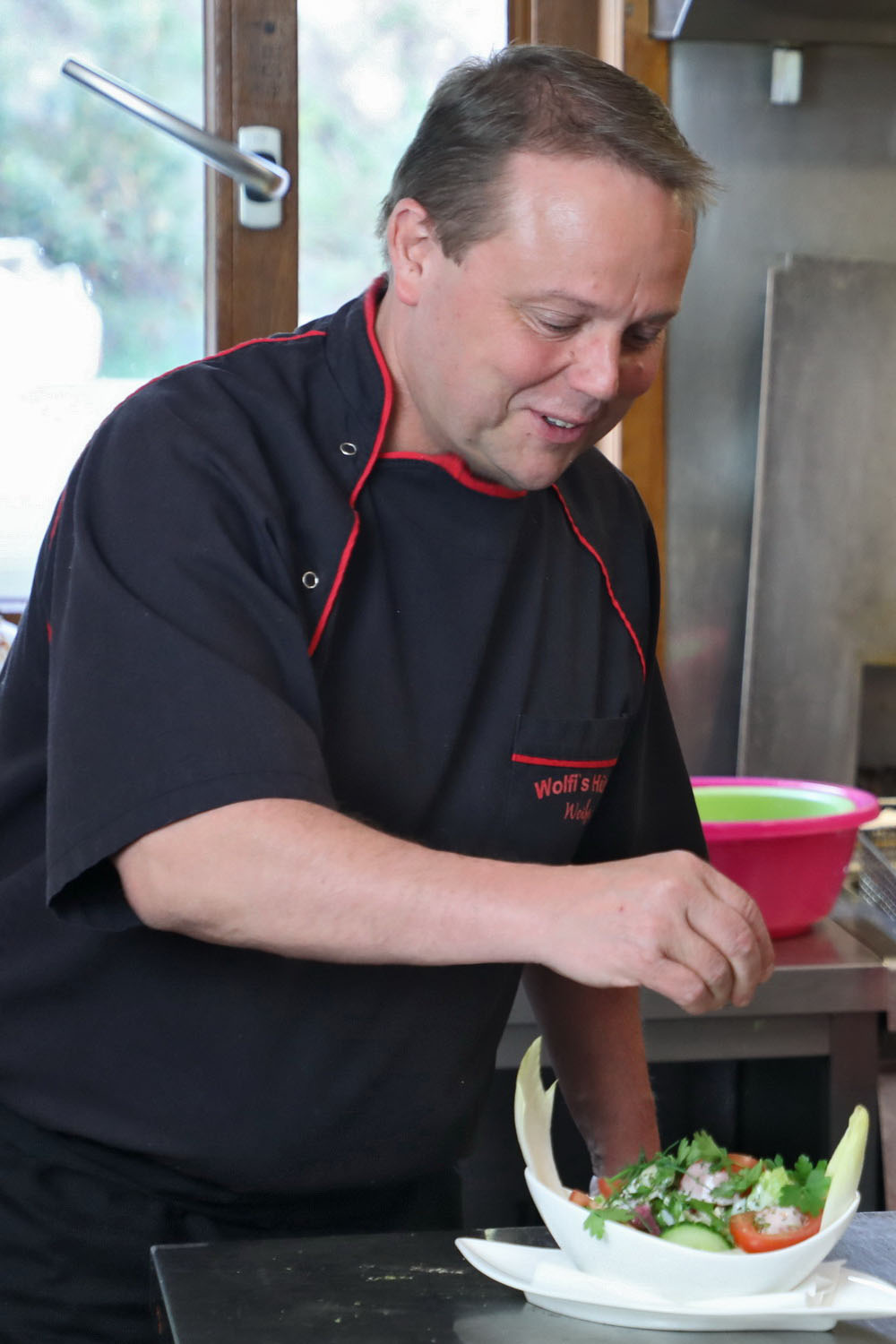 Der Wirt und koch in einer Person zaubert die köstlichsten Gerichte auf den Tisch.